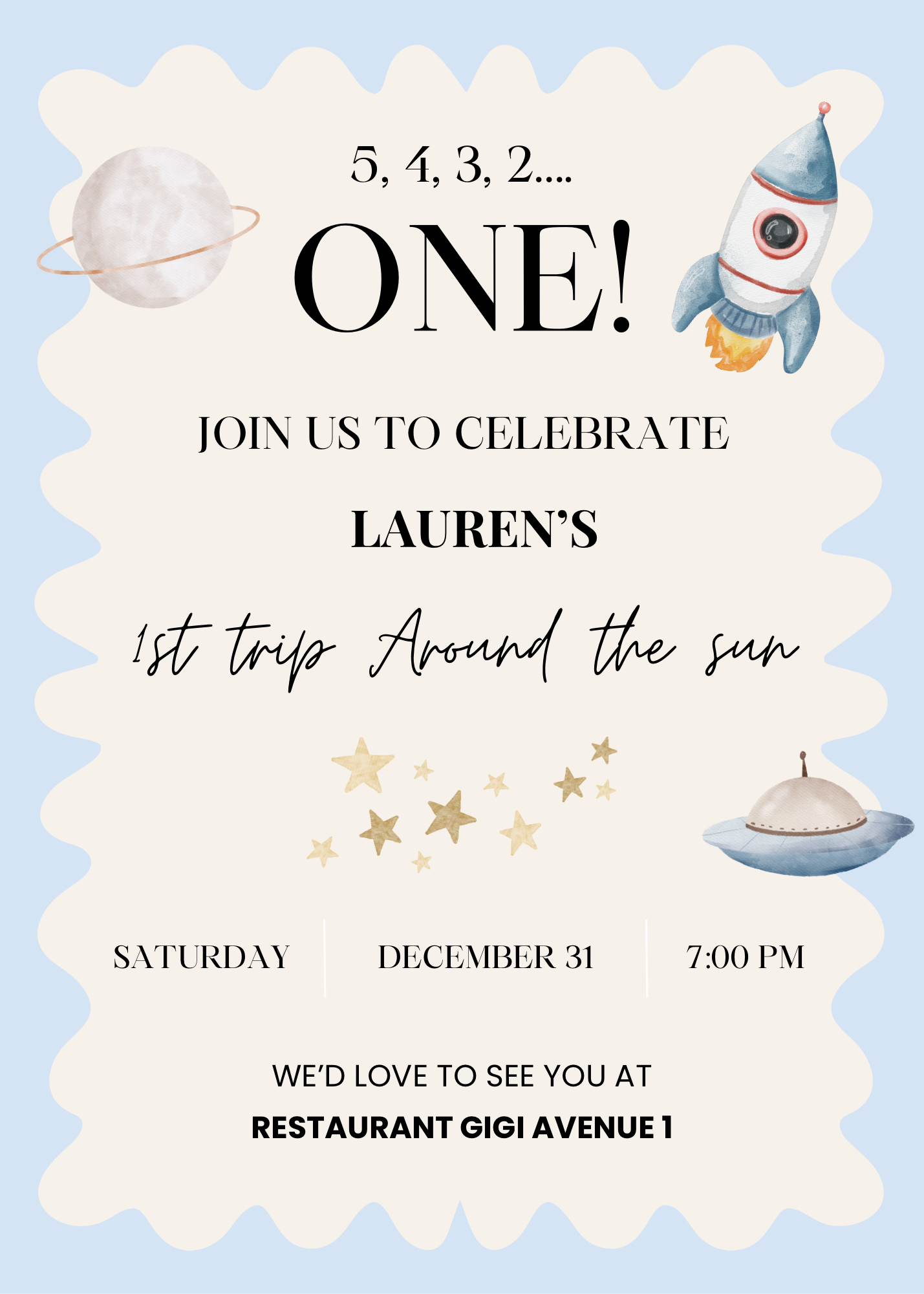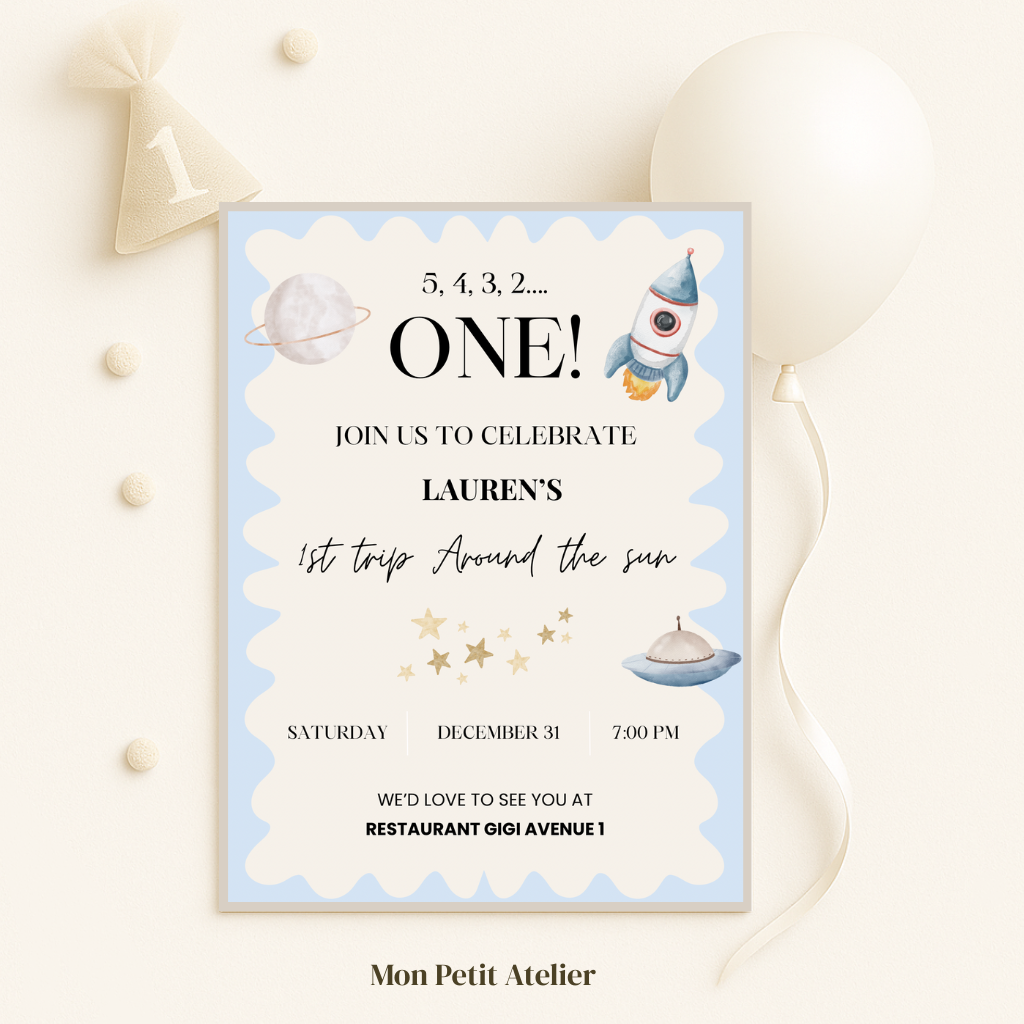 Maak het eerste verjaardagsfeestje van jouw baby écht onvergetelijk met een uitnodiging die net zo bijzonder is als hij of zij. Elk ontwerp is met liefde gemaakt in stijl — zacht, modern en perfect afgestemd op jouw thema.