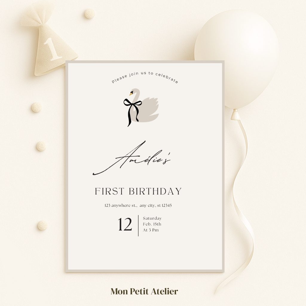 Maak het eerste verjaardagsfeestje van jouw baby écht onvergetelijk met een uitnodiging die net zo bijzonder is als hij of zij. Elk ontwerp is met liefde gemaakt in stijl — zacht, modern en perfect afgestemd op jouw thema.